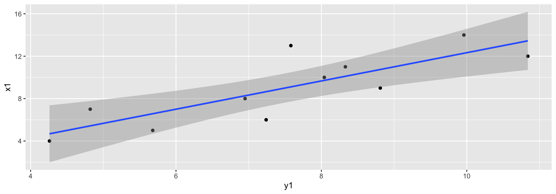 ggplot2anscombe data x1 x2 x3 x4 y1 y2 y3 y4