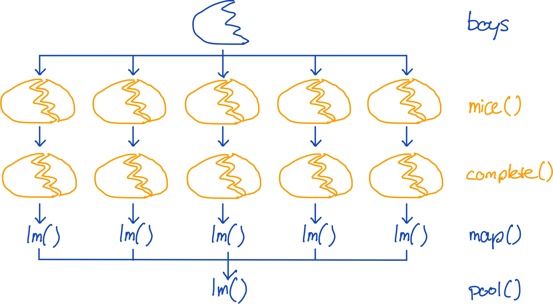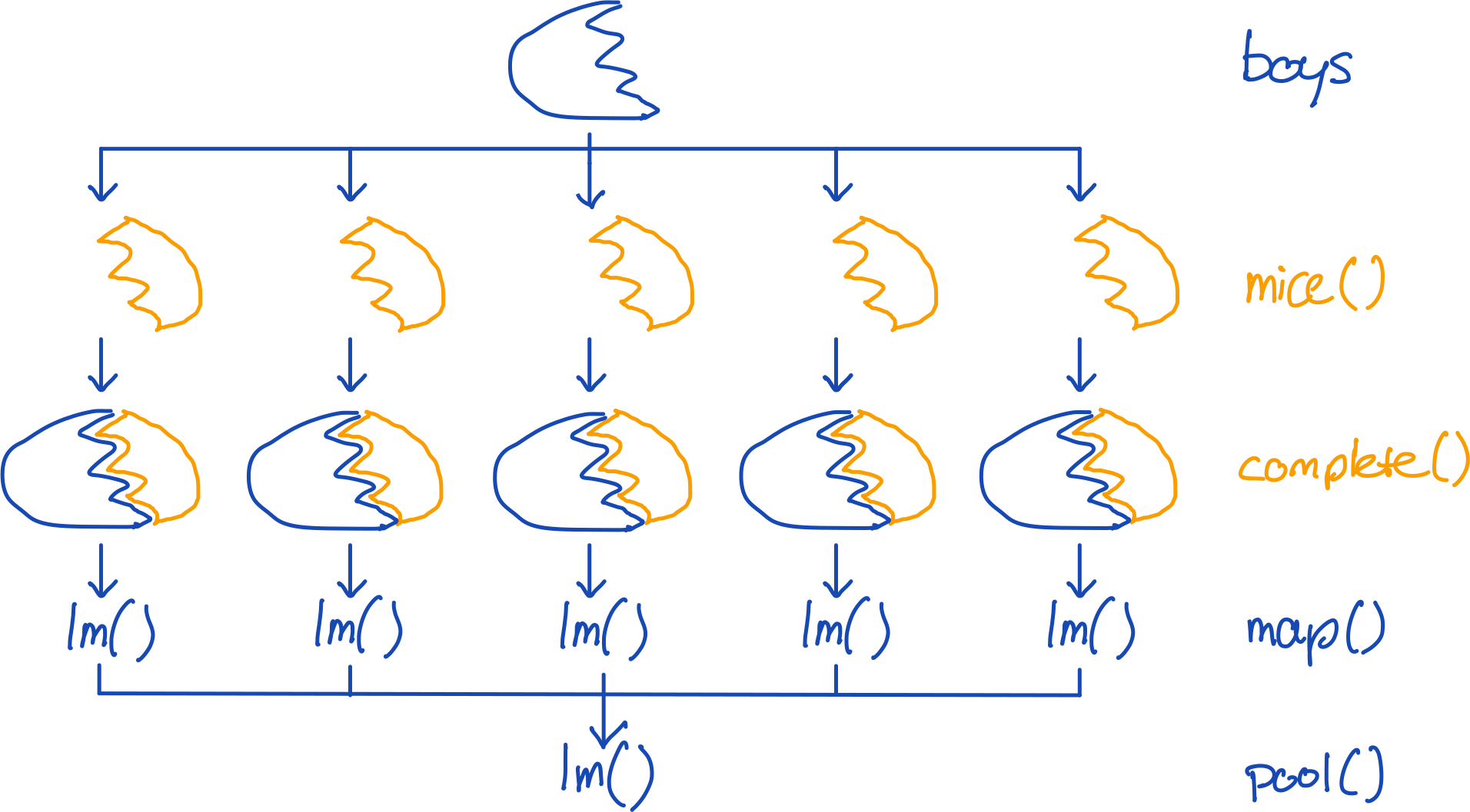mice(m = 5, method = "cart", printFlag = FALSE) %>%