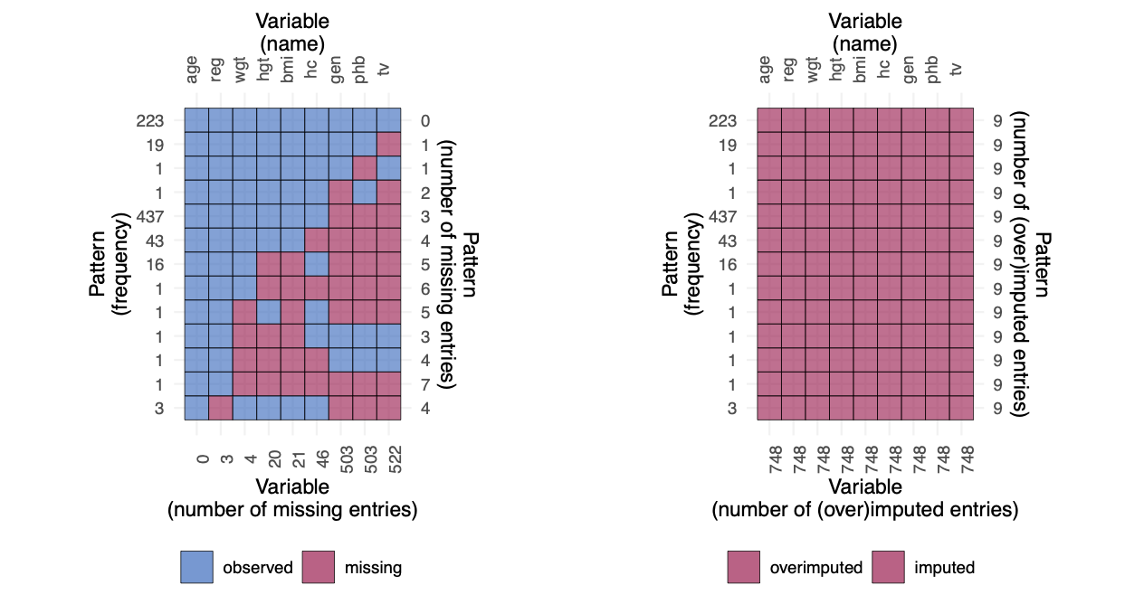 mice(m = 6, method = "cart", printFlag = FALSE, where = matrix(TRUE, 748, 9)) %>%
